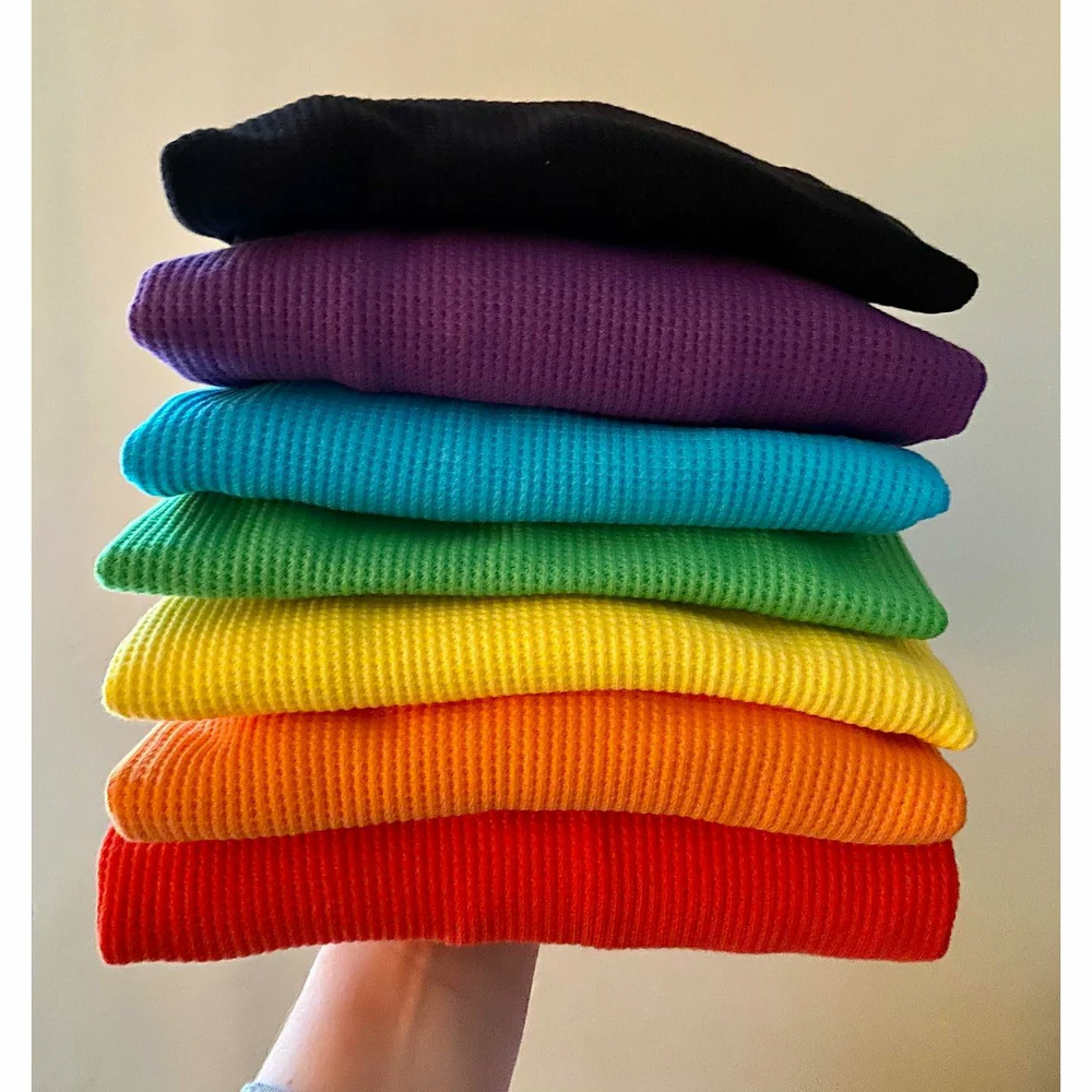 Țesătura de bumbac gofrat 100%, foarte groasă și moale, este suficient de rezistentă pentru a fi folosită ca haine de zi, moale pentru a fi iubită ca îmbrăcăminte de casa și suficient de potrivită pentru a fi folosită ca pijamale.