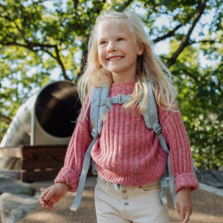 - Petice reflectorizante pe toate părțile (15 în total) pentru vizibilitate și siguranță optime în drum spre și de la școală