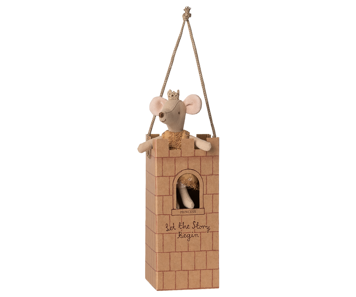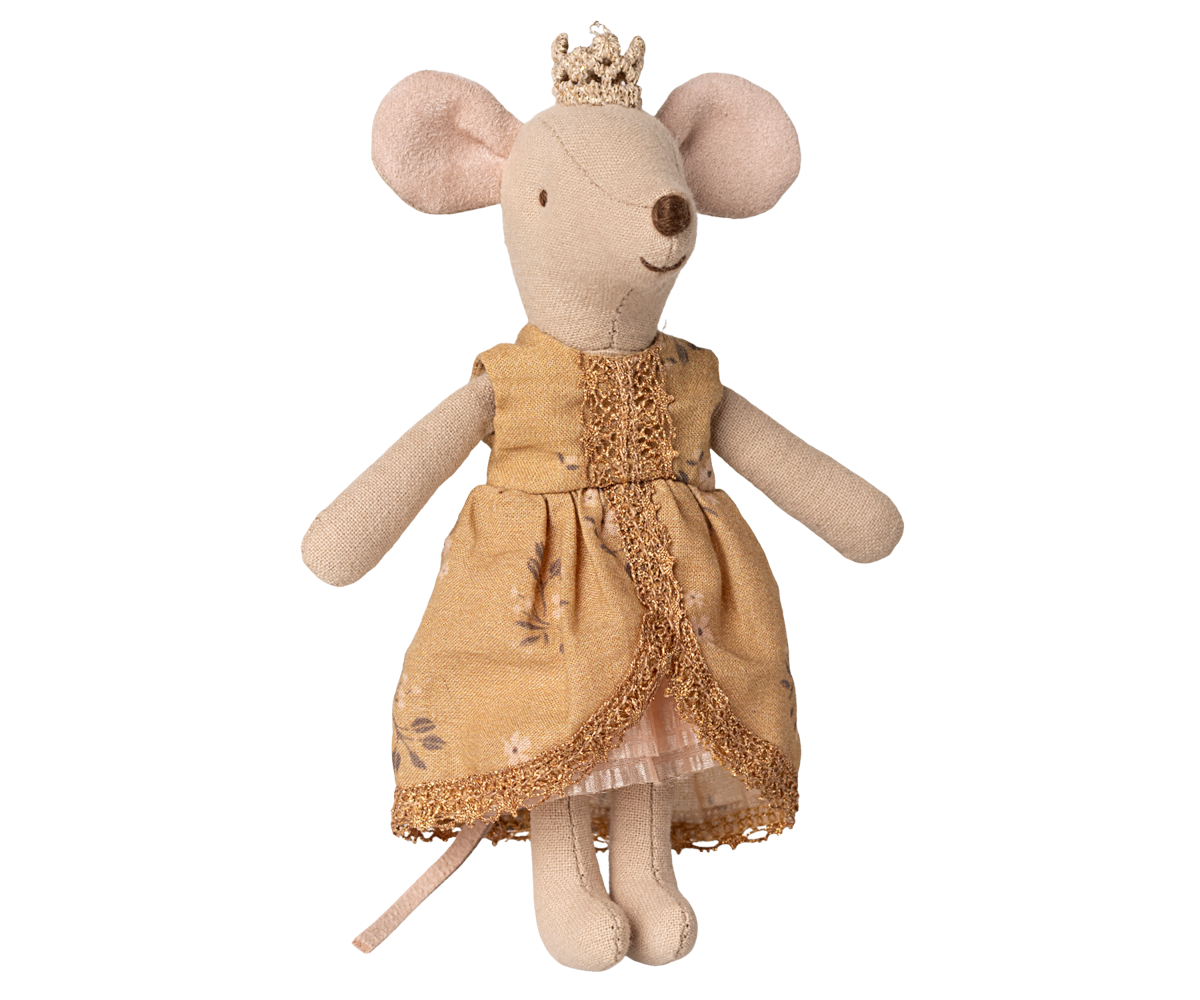 O adevărată prințesă șoricel, mărimea unei surori mai mari. Este îmbrăcată în cea mai frumoasă rochie a ei, cu detalii frumoase și o coroană aurie. Se potrivește perfect în castelul Maileg.