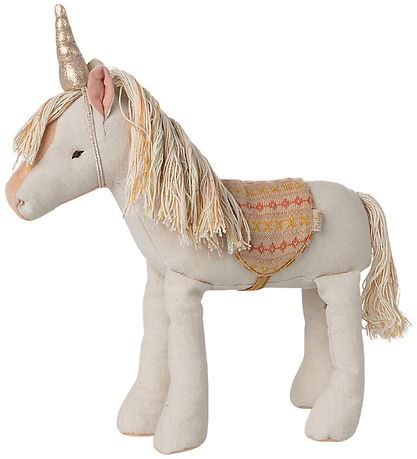 Pentru produsele Maileg oferim Serviciul  Impachetare Cadou - GRATUIT.                                          O poveste magică este pe cale să înceapă. Cu acest unicorn realizat în tonuri colorate și un corn auriu, există multe povești de dezvăluit. Unicornul vine cu o șa, astfel încât prietenii să se poată bucura de o plimbare confortabilă.