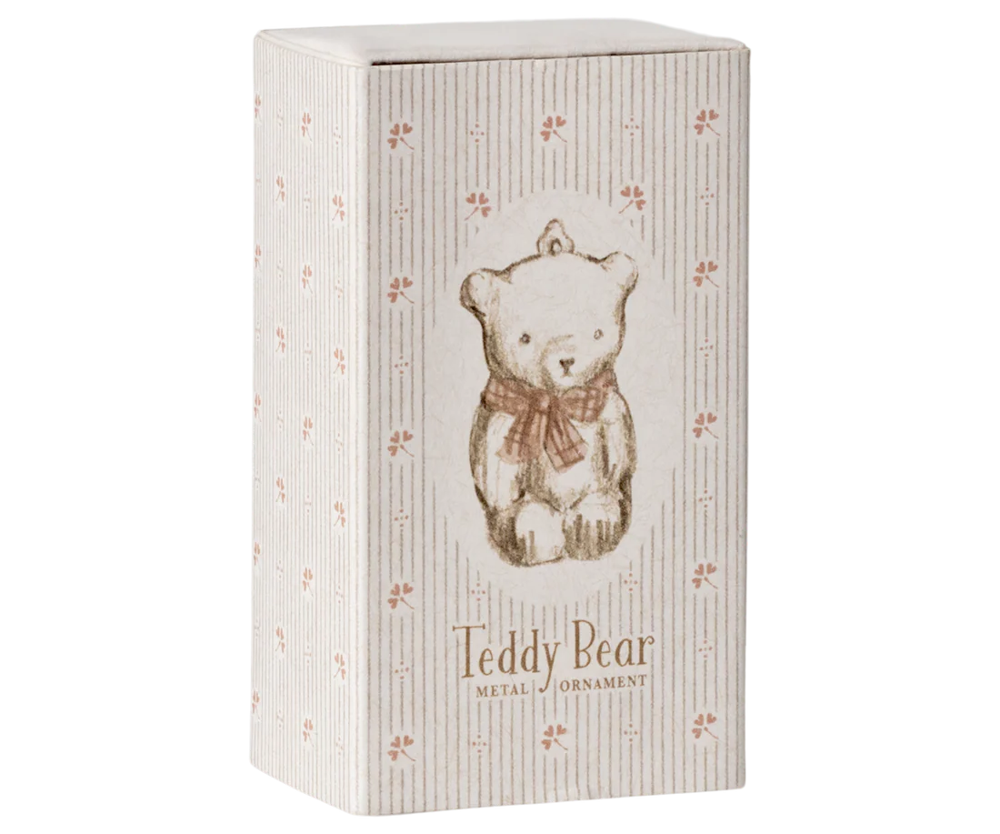 Maileg ACCESORII - Ornament metalic, Ursuleț de pluș - Alb-gălbui/roz
